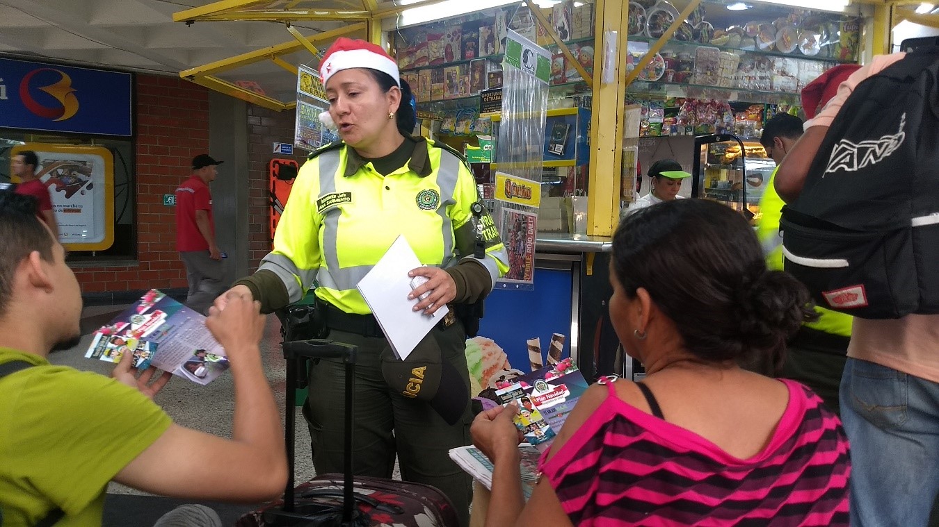 Con un stand informativo, un dumi y la entrega de almanaques 2019 se desarrolla la campaña que inició en la terminal de Norte de Medellín, con la cual se busca concientizar al ciudadano para que también aporten a la movilidad segura a propósito de la temporada de vacaciones y la época de navidad.
