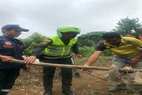 En atención a la estrategia integral de protección animal, el departamento de policía Tolima se permite informar, siendo aproximadamente las cuatro de la tarde, momentos en que personal del cuadrante se encontraban realizando patrullaje de rutina por el municipio de palo cabildo, fueron informados por ciudadanos mediante llamada telefónica, quienes manifiestan sobre la presencia de oso perezoso en el barrio el porvenir, el cual llego a la vía pública del sector poniendo en riesgo su vida.