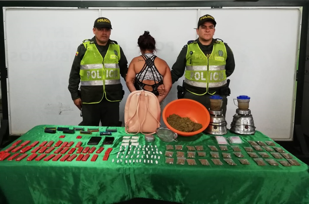 Mediante las actividades de control y registro por parte del Modelo Nacional de Vigilancia Comunitaria por Cuadrantes en el sector de Altos de Andina en el municipio de Girón, se captura a una mujer con más de 800 dosis de marihuana y bazuco, así mismo se le halla en su poder diferentes elementos para la dosificación de estupefacientes, incautándole dos licuadoras, bolsas herméticas, grameras, máquinas de elaboración de cigarrillos y papel usado en estos estupefacientes.