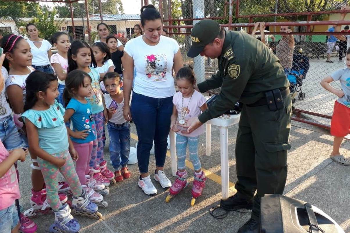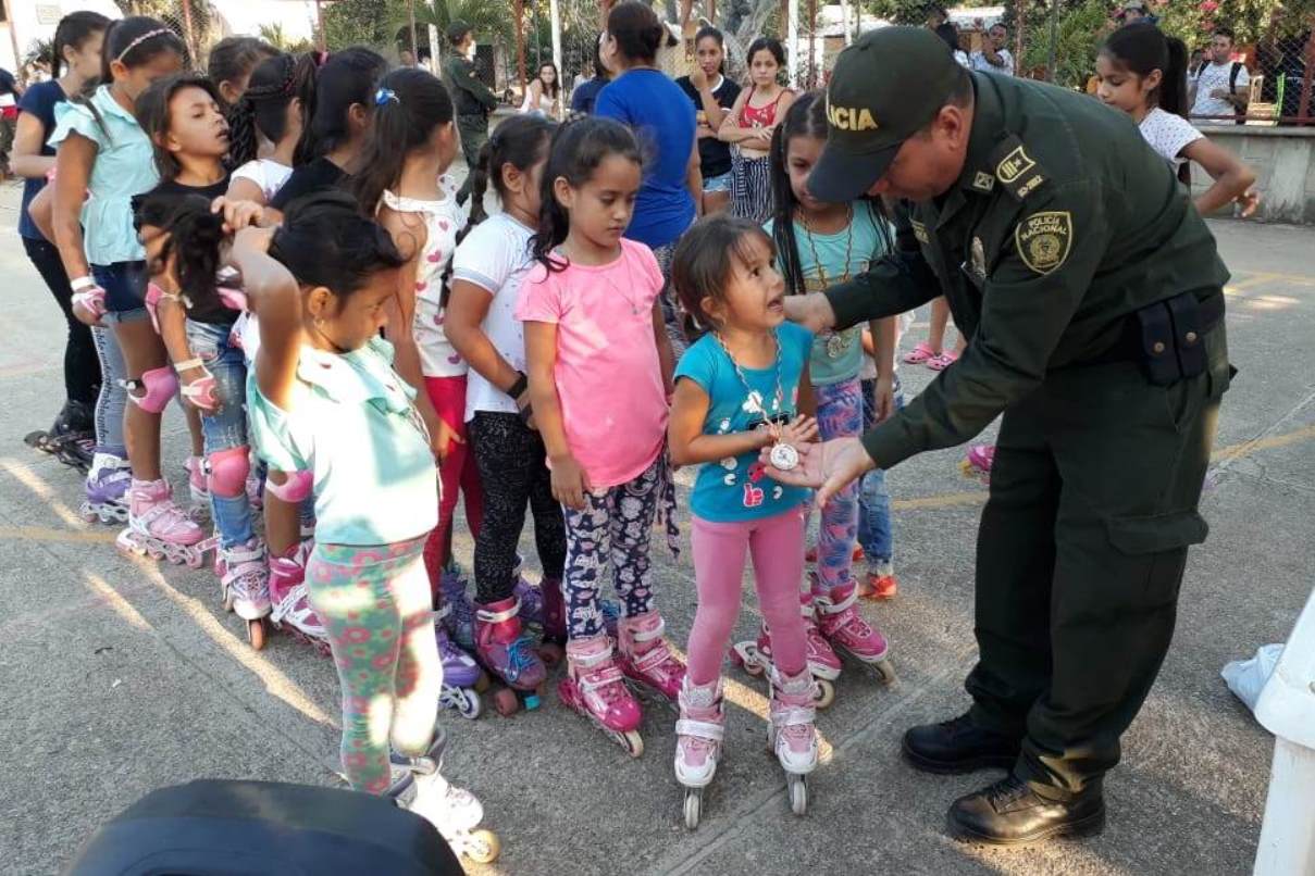 En el marco de la estrategia “Policía Más Cerca del Ciudadano”, el Departamento de Policía Cesar, a través del personal adscrito a la Subestación Los Ángeles, realiza un torneo infantil femenino de patinaje, del cual participaron más de 20 niñas de esta localidad.