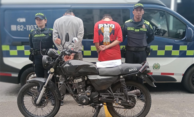 Los hombres capturados fueron dejados a disposición de la autoridad judicial competente por el delito de hurto calificado y agravado. Asimismo, la Fiscalía adelanta las diligencias necesarias para solicitar ante la autoridad judicial el comiso de la motocicleta utilizada para cometer el hecho delictivo y, de esta manera, evitar que siga siendo empleada para afectar a la ciudadanía.