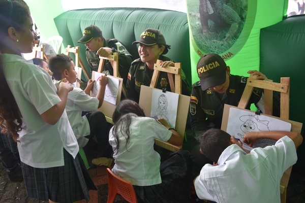 Seccional de tránsito y transporte, carabineros, escuadrón móvil antidisturbios, grupo de prevención y educación ciudadana, modelo nacional de vigilancia comunitaria por cuadrantes, policía ambiental y ecológica, turismo, infancia y adolescencia, grupo de acción unificada para la liberación personal - GAULA, grupo especializado de rescate y grupo de incorporación, se hicieron presentes en los stand donde le iban mostrando a la población el objetivo de cada uno de estas especialidades y como contribuimos a la convivencia y seguridad ciudadana.
