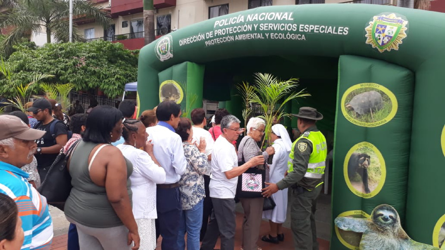 La palma de cera tarda más de 100 años en crecer, no obstante, muchos desconocen esto y atentan contra ella en las festividades religiosas en nuestro país, extrayéndola de su hábitat, comercializándola y generando impactos ambientales peligrosos. En el planeta existen 12 categorías de palma de cera y más de la mitad de ella se encuentran en nuestro país a punto de desaparecer por culpa de las malas prácticas o conductas de la comunidad. Por estas razones, los integrantes de la Policía Ambiental y Ecológica del Valle del Cauca en acompañamiento del Grupo Juvenil Ambiental Amigos de la Naturaleza, donaron 200 Palmas de Areca, especie de flora tropical a fin de sustituir la utilización de la palma de cera, generando nuevos hábitos saludables con el ambiente, y socializando a la comunidad la importancia de no extraer especies del bosque en la celebración sagrada, dicha actividad se llevó a cabo en los sitios religiosos como a las afueras de las Iglesias, galería y comunidad en general.