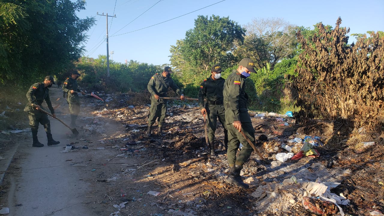 La Policía Nacional del Departamento de Bolívar a través del Grupo de Prevención y Educación Ciudadana, Auxiliares de Policía y personal de la empresa regional de aseo, lideró la recuperación y embellecimiento de la calle que comunica el barrio la Esmeralda con avenida Colombia del municipio de Magangué, con el fin de que estos espacios sean utilizados por toda la comunidad en general de forma sana y responsable.