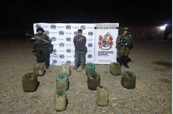 En la vereda Toledito, también se dieron resultados, pues el personal de la Estación de Policía del municipio de Toledo, en coordinación con Ejército Nacional, capturaron en flagrancia una persona de nacionalidad venezolana en momentos en que transportaba 35 galones de gasolina en una camioneta de color azul, material que sería comercializado en los municipios aledaños a Toledo.