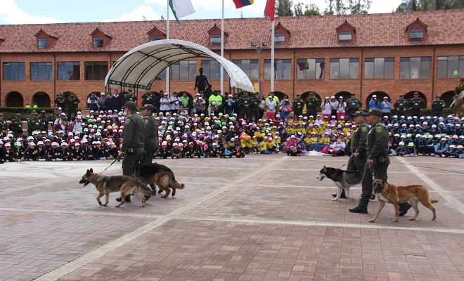 Evento fue presidido por la señora coronel Olga Patricia Salazar Sánchez, subdirectora de Escuela, quien recibió a los invitados y les enseñó nuestro saludo institucional. Posteriormente inició la jornada recreo educativa en la cual los niños y niñas participaron en diferentes actividades, carrera de obstáculos, show canino, bailaron zumba, conocieron el régimen interno de este centro educativo, además, contaron con una sección fotográfica con los caballos y perros del Grupo de Carabineros y Guías Caninos.