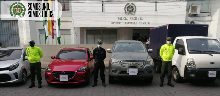 Integrantes de la Unidad Técnica en Identificación de Automotores SIJIN, recuperaron ocho vehículos que presentan número de identificación regrabado y placa falsa, así mismo se inmovilizaron dos vehículos requeridos por embargo. Estos vehículos fueron recuperados gracias a los controles de efectuados por la Policía Nacional en puntos del municipio de Tumaco.