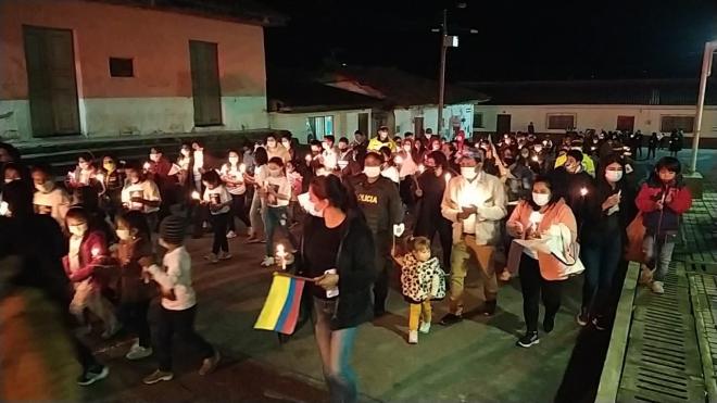 En Sapuyes, sus habitantes realizaron una marcha nocturna en compañía del Grupo de Prevención y Educación Ciudadana con el apoyo de integrantes del Modelo Nacional de Vigilancia Comunitaria por Cuadrantes (MNVCC), buscando el acercamiento y fortalecimiento de lazos de confianza y amistad, a través de “Encuentros de paz”.