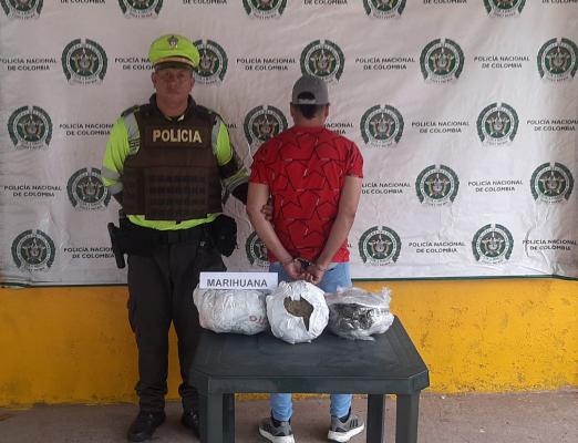 Mediante labores de verificación y control sobre este importante eje vial del departamento, los uniformados le realizan el pare a una motocicleta que transitaba por este sector, donde al verificar los paquetes que transportaba el conductor del vehículo, le fueron hallados tres paquetes prensados envueltos con cinta transparente y en su interior una sustancia vegetal con características similares a la marihuana. El estupefaciente estaría avaluado en $5.000.000 millones de pesos.