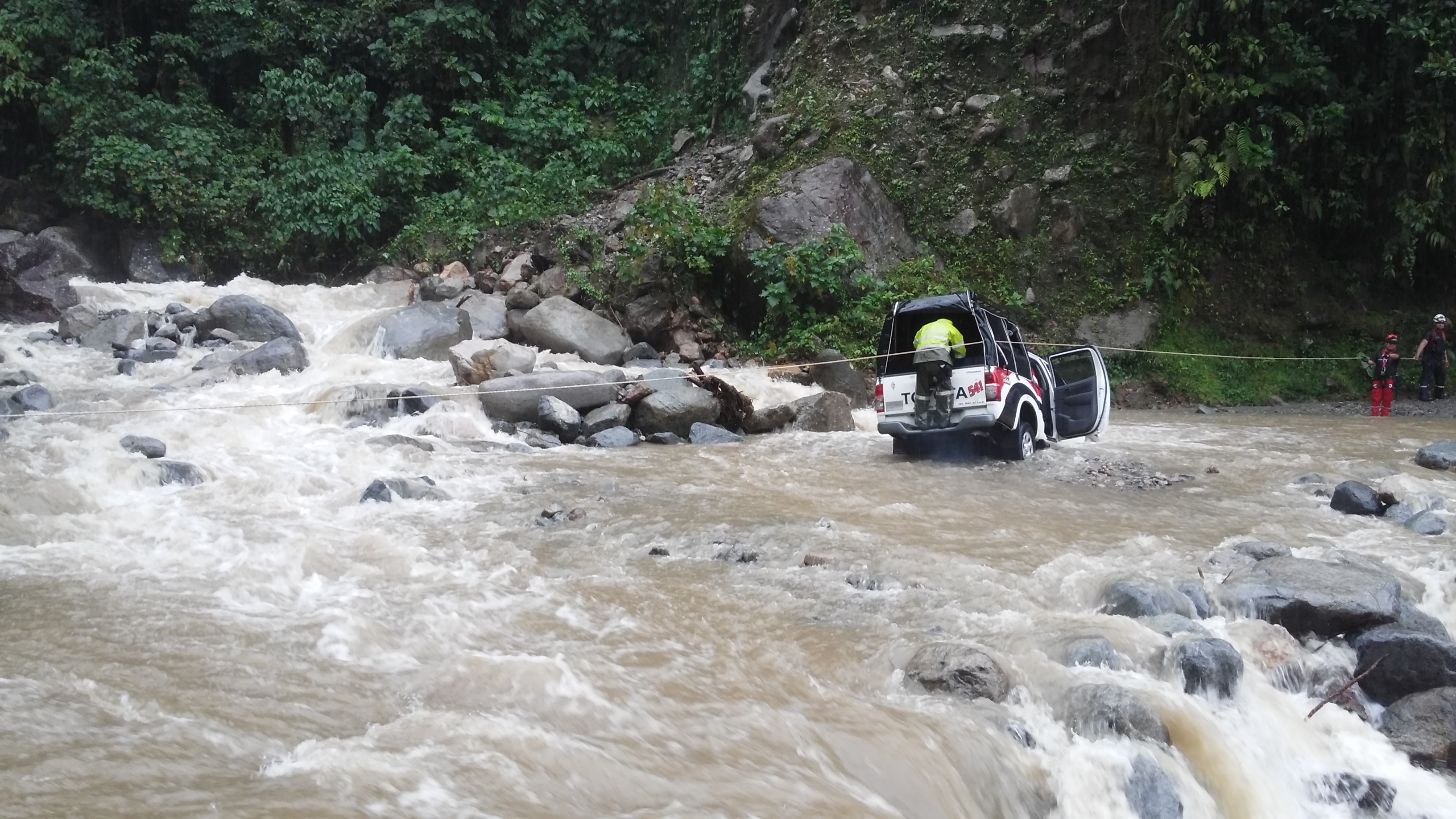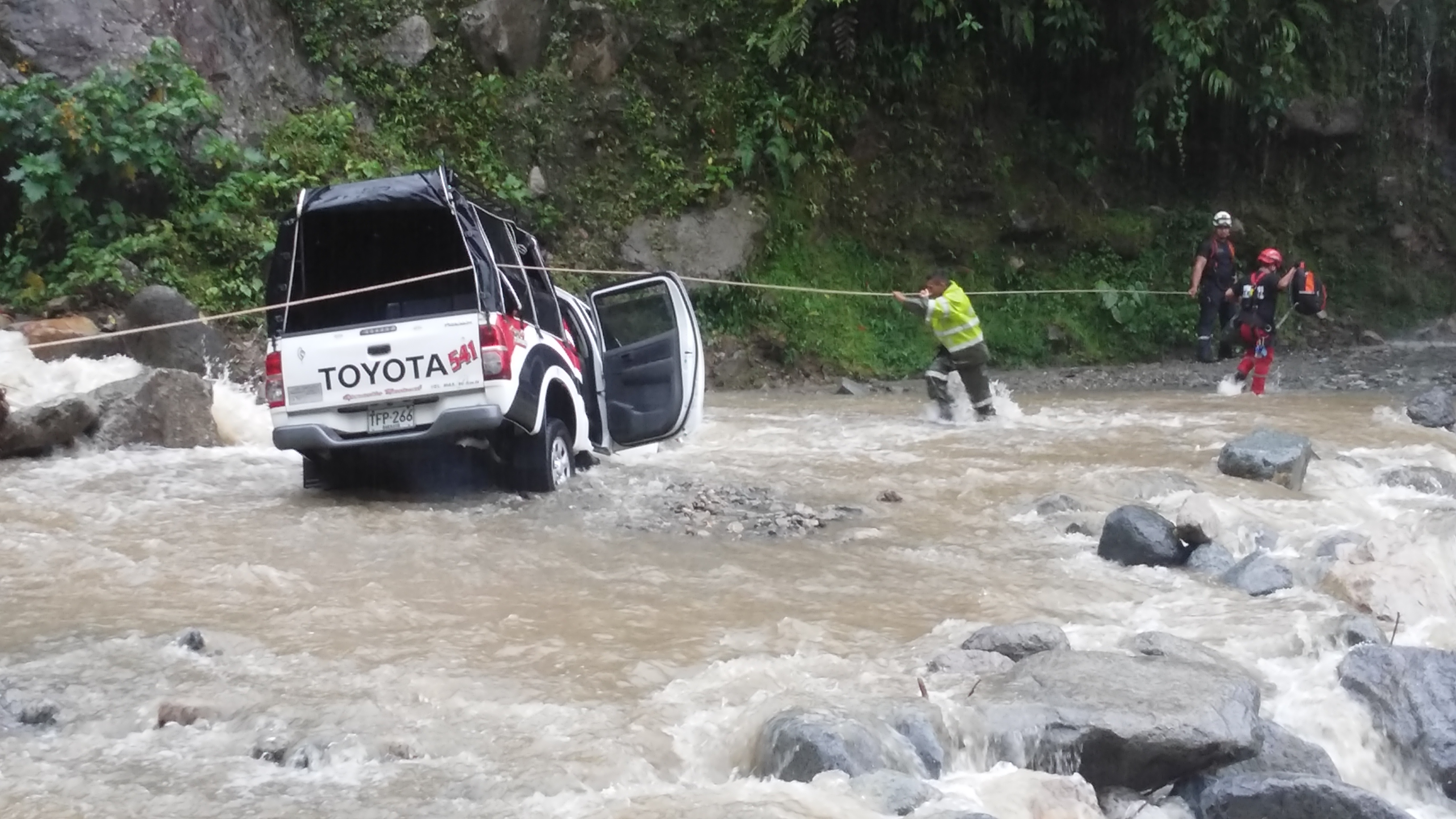 El hecho se registró en el sector conocido como La Mazamorra, al paso del cauce de la quebrada El Pepinito, segun la información suministrada por el conductor del vehiculo de servicio público, en momento que se encontraba cruzando estas aguas, el motor de su camioneta se apago, quedando atrapado con 4 tripulantes, de manera inmediato hicieron presencia en el lugar unidades de la Seccional de Transito Transportes de la Policía, Unidades de Bomberos Mocoa y Defensa Civíl, los cuales sin mediar peligro se lanzaron a estas aguas y lograron poner a salvo a todas las personas que se encontraban al interior de este vehículo.
