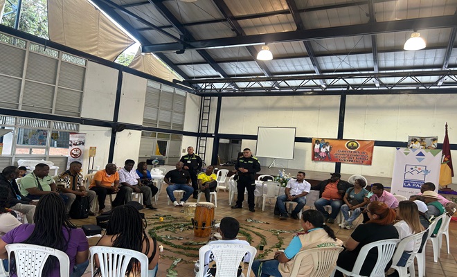 Este proceso se llevó a cabo a través del componente de Cultura y Pedagogía de Paz y Género del Modelo de Construcción de Paz, orientado a generar articulaciones estratégicas entre instituciones, comunidades y actores de la cooperación internacional. Además, durante esta jornada se promovió un diálogo intercultural de saberes entre la Policía Nacional y las personas afro, constituyendo un ejercicio de reconocimiento mutuo, respeto y aprendizaje colectivo.
