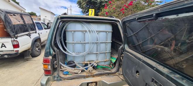 En el sector de Puente Remolino, municipio El Rosario, fueron capturadas diez personas quienes se movilizaban en cinco vehículos tipo campero y una camioneta, trasladando en su interior tanques de gran almacenamiento de líquidos y bidones plásticos de cinco galones que contenían combustible.