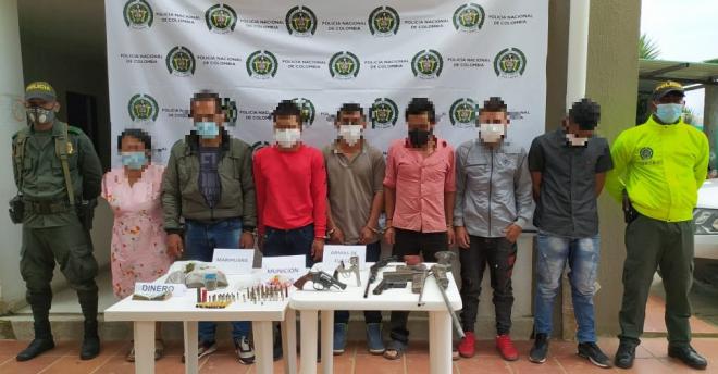 En tres inmuebles ubicados en la vereda Arrayanes y Olaya, se capturaron a siete personas, quienes se dedicaban a la venta de estupefacientes en menores cantidades, también fueron incautados un revolver, cinco armas de fuego de fabricación artesanal, munición de diferentes calibres y dinero en efectivo producto del ilícito.