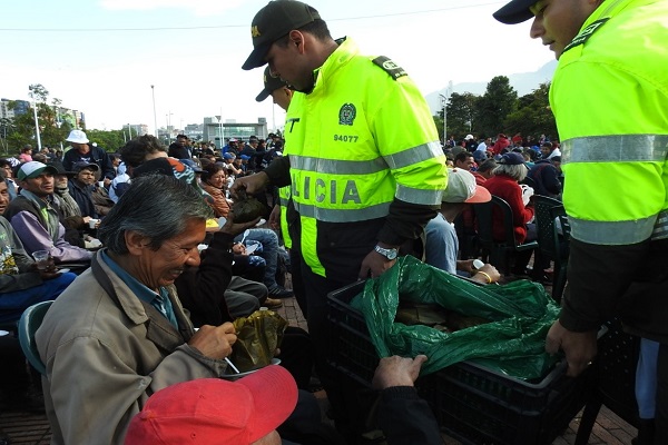 Con la actividad “un desayuno con un amigo verde oliva” se benefició este domingo 9 de diciembre a cerca de 640 habitantes de calle, del sector centro de la ciudad de Bogotá, en desarrollo del proceso de proyección social liderado por la Escuela de Suboficiales y Nivel Ejecutivo Gonzalo Jiménez de Quesada al mando del señor coronel Luis Fernando González Herrera.