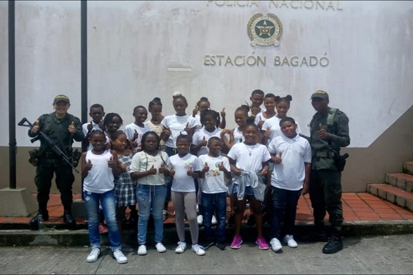 Implementación del programa “Cine con tu Policía” con lo que pretende abarcar la mayor parte de los niños y niñas de Bagadó, para ello visita los diferentes barrios del municipio, llevando mensajes de tolerancia, respeto y solidaridad a través de la proyección de películas educativas