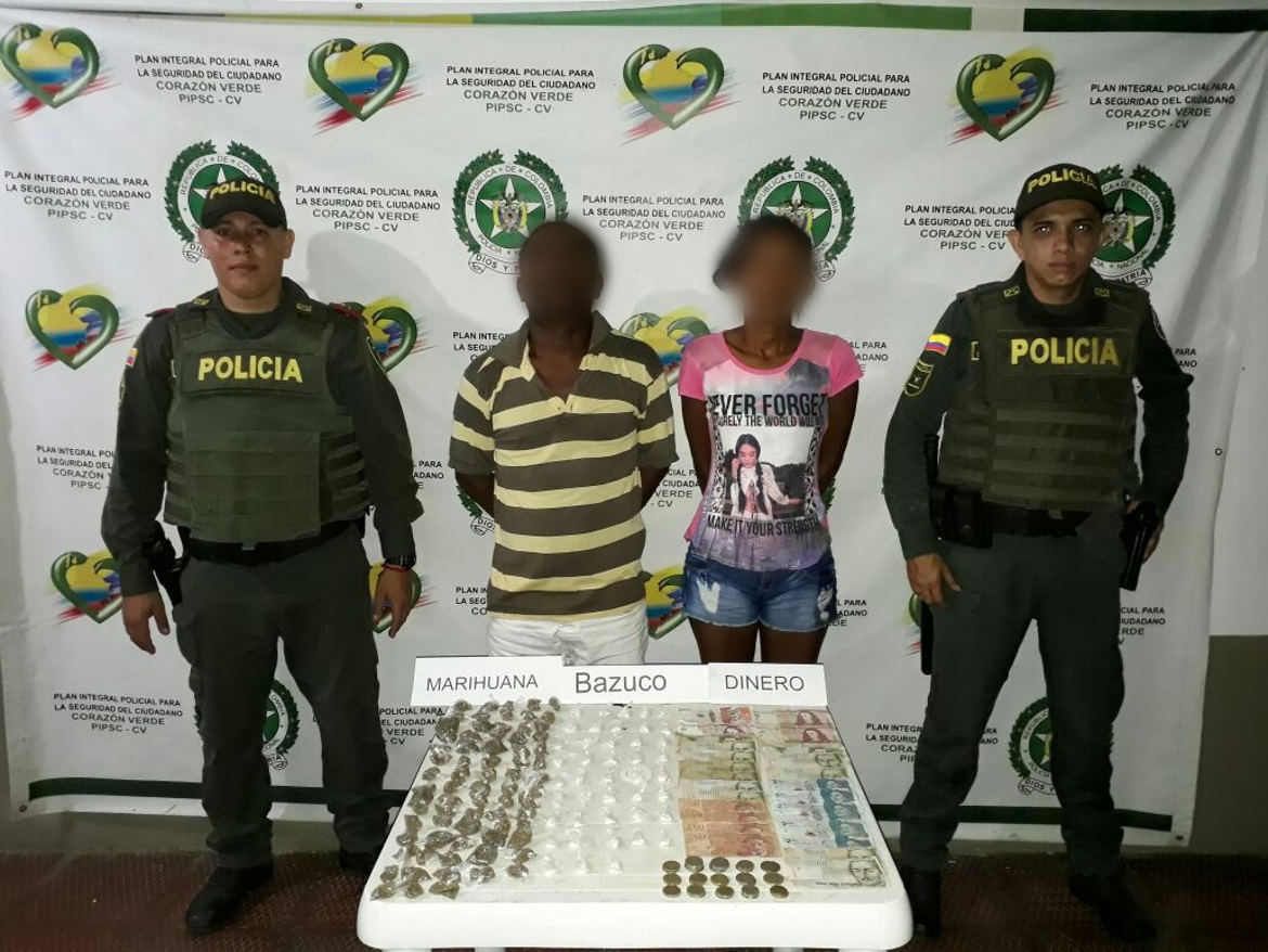A la pareja sentimental le fueron encontrados en su poder dos frascos; uno trasparente que contenía en su interior ‘marihuana’ y el otro ‘bazuco’ con más de 100 dosis respectivamente. Así mismo a estas dos personas les fue incautada la suma de $105.000 en efectivo, producto de la venta de la sustancia alucinógena.