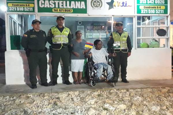 Esta historia conmovió a los dos Patrulleros quienes se comprometieron a conseguirle una nueva silla de ruedas, noticia que alegró a Miguel, quien diariamente pasaba por el CAI saludando a todos los Policías.