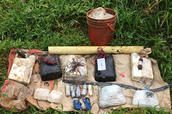 Ubicación y destrucción de 81 kilogramos de explosivo amonal