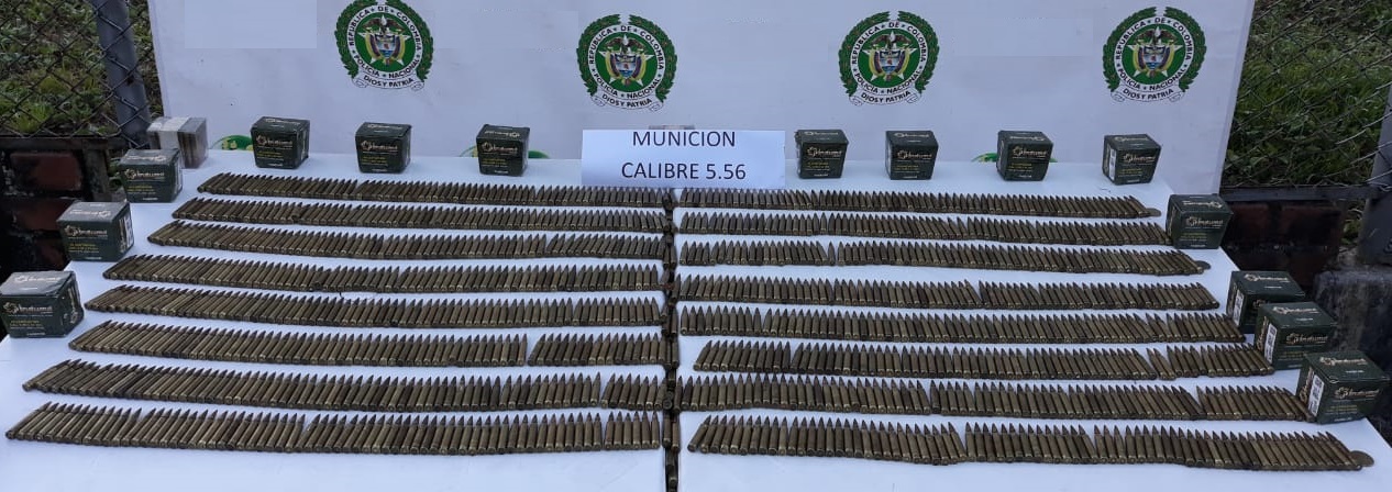 Mediante actividades de control vial logramos la incautación de abundante material bélico de uso privativo de la fuerza pública