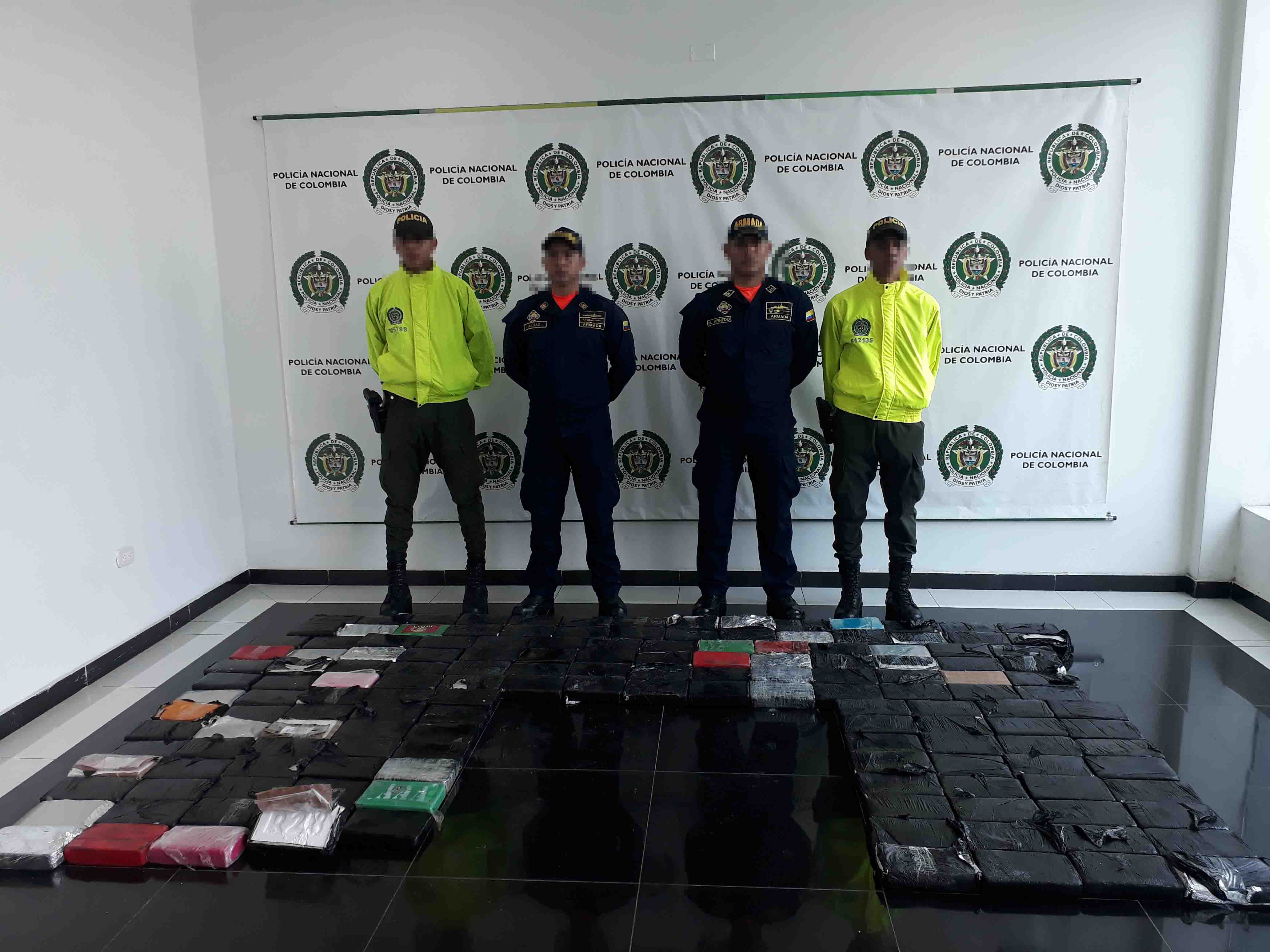 En coordinación con la Armada Nacional incautamos 155 kilos de clorhidrato de cocaína