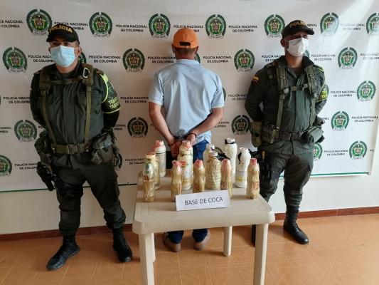 Capturado con 15 kilos de base de coca ocultos en botellas de plástico